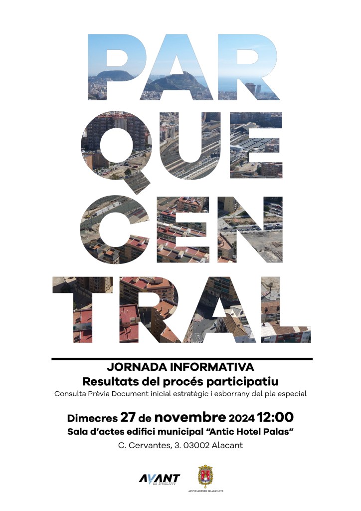Durant la tramitació del pla especial d’ordenació detallada es duran a terme jornades de participació l’objectiu de les qual és informar la ciutadania sobre el procés de planificació de l’àmbit i recollir les seues aportacions i idees per a l’ordenació del Parc Central d’Alacant.